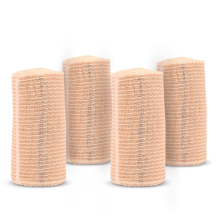 Q DEVICES Elastic Crepe Bandage for Support & Relief – Air-Permeable, Skin-Friendly, Easy to Cut (10 cm x 4 m)